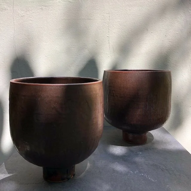 Dark Brown + Tan (left) | D 3.5” x H 9” | $220